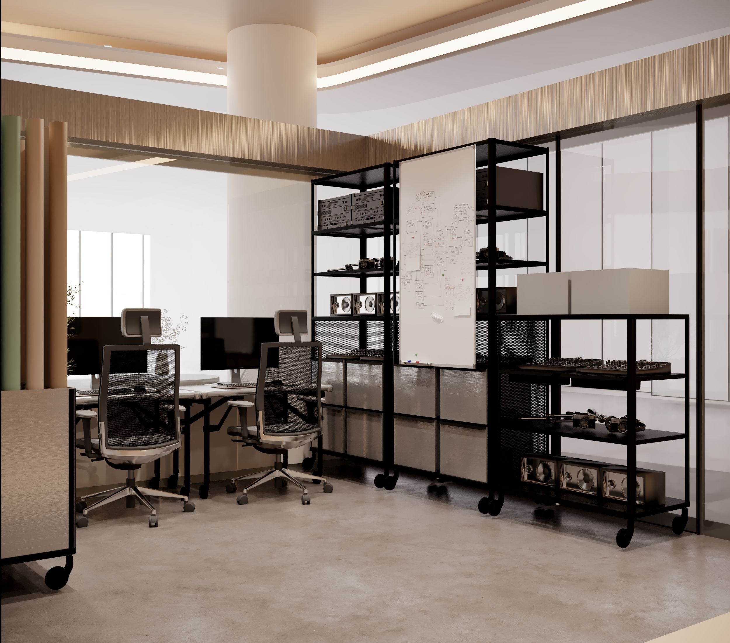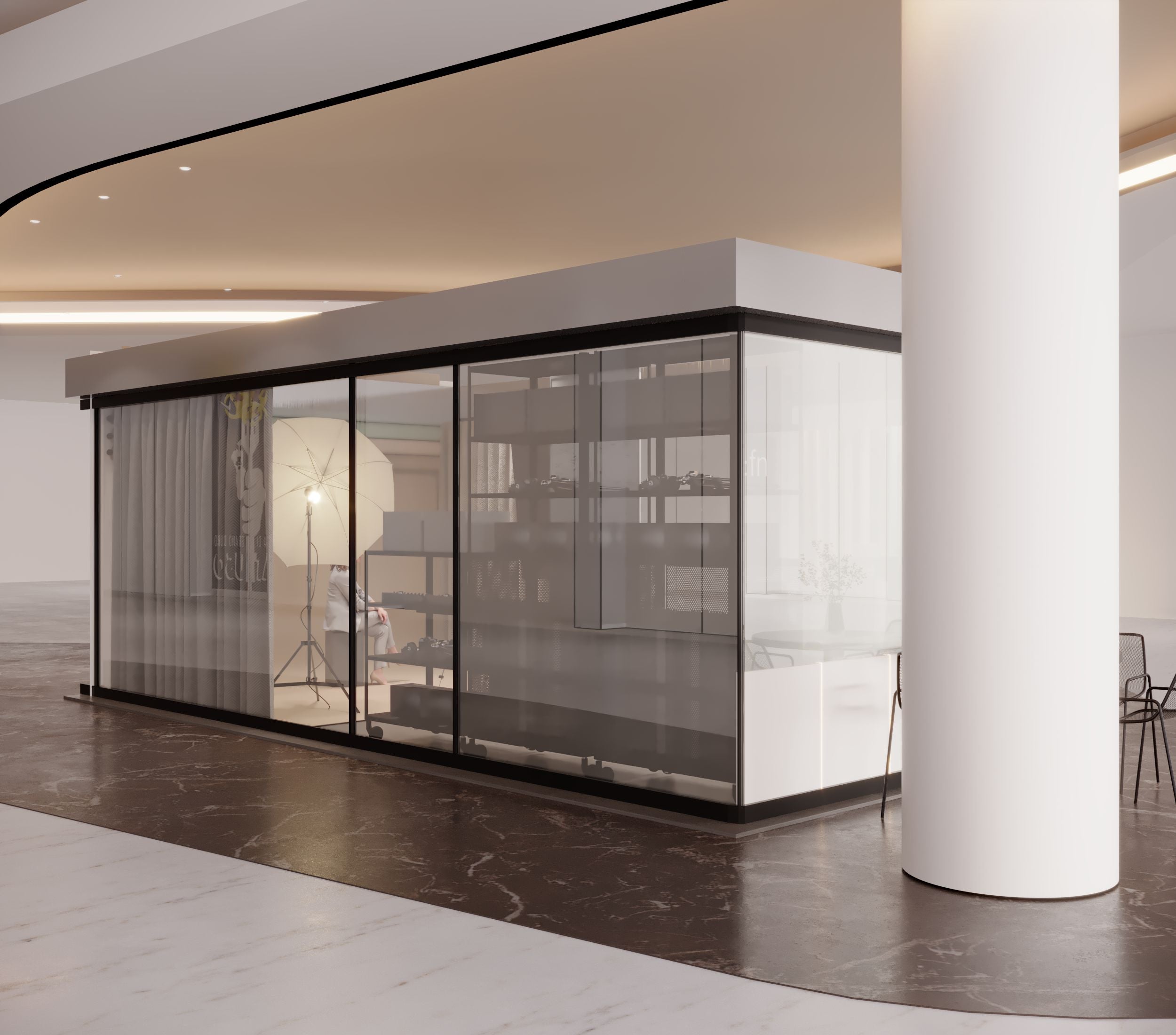 This project reimagines the design of a traditional kiosk as a dynamic space designed to ignite creativity. Serving as both a workspace and a photography studio, this airy and multifunctional environment is dedicated to empowering our client's artistic endeavors. With a focus on flexibility and innovation, the kiosk offers a fluid canvas for brainstorming, collaboration, and inspiration. Whether capturing captivating images or cultivating groundbreaking ideas, this space is meticulously crafted to foster a vibrant atmosphere where creativity knows no bounds.