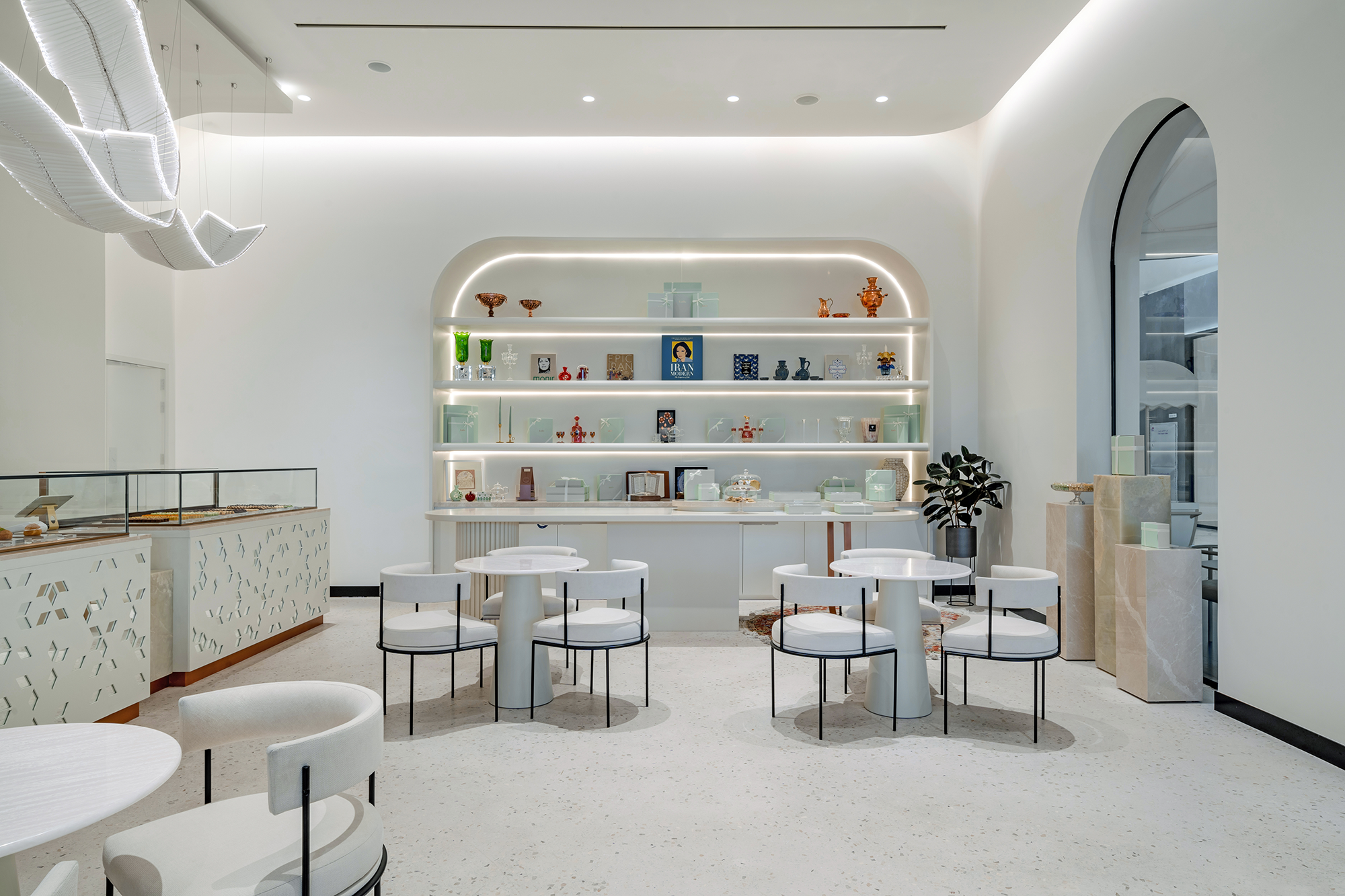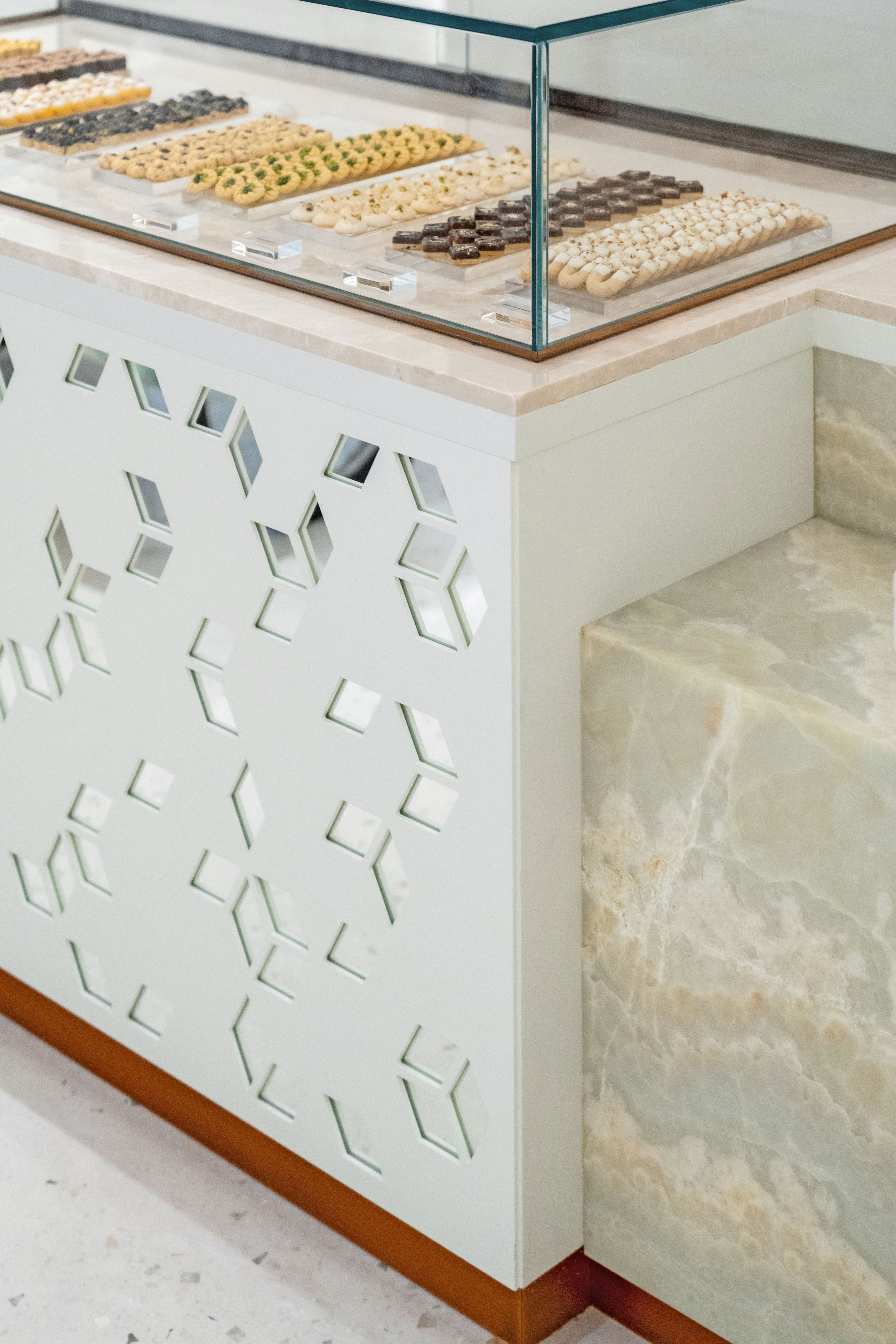 Inspired by the Persian architecture and culture, the store interior represents a modern time capsule drawing inspiration from Persian culture, as every element in the design of this space is carefully crafted with attention to detail on all fronts. The vision of the client was to create a sophisticated space for customers to sip on a cup of tea and enjoy the fresh signature sweet treats.